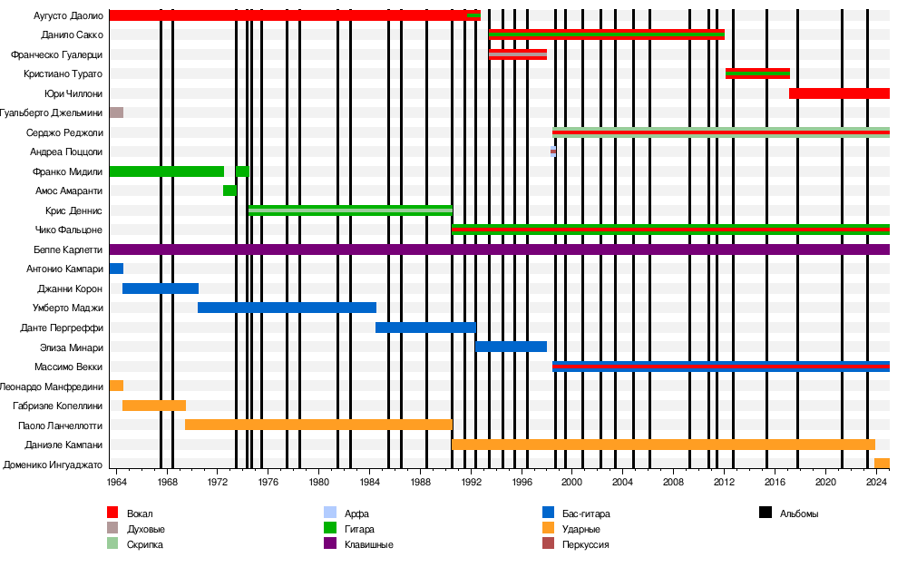 В 1969 году Била Копеллини покинул группу, чтобы заняться фотографией, его заменил Паоло Ланчеллотти (1947—2014)[5].