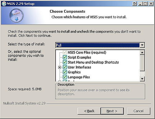 Компилятор NSIS — программа makensis — компилирует скрипты в исполняемый код. Каждая строчка скрипта содержит одну команду. Пример: