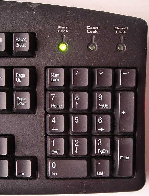 Цифровые клавиши — при включенном индикаторе Num Lock удобная клавишная панель с цифрами и знаками арифметических операций, расположенными, как на калькуляторе. Во включённом состоянии (индикатор Num Lock включен) переводит цифровой блок в режим ввода цифр, в выключенном работает режим управления курсором. Такой режим целесообразен для компактных клавиатур, не имеющих отдельных клавиш управления курсором.