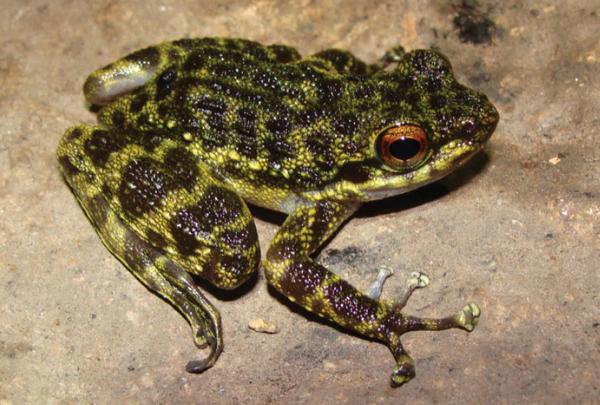 Это лягушки среднего размера, длиной до 65 мм. Кожа зернистой текстуры с железистыми бородавками. Верхние челюсти плотно усажены остроконечными, несколько загнутыми назад зубами. На нижней челюсти всего один большой острый клык[2]. Пальцы слегка удлиненные, плоские, с крупными, в форме сердца, присосками. Первый палец короче , чем второй. Самцы имеют парные горловые мешки. У головастиков отсутствует боковая линия[3].