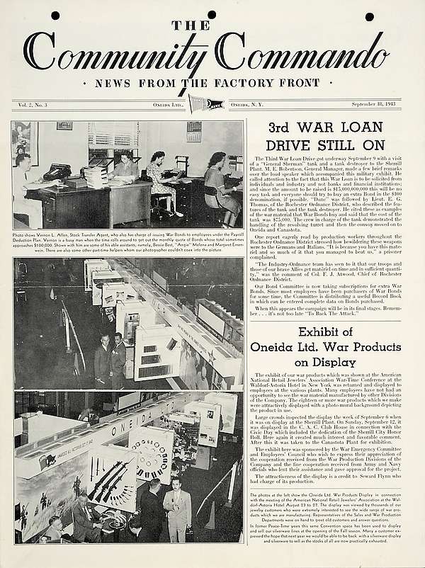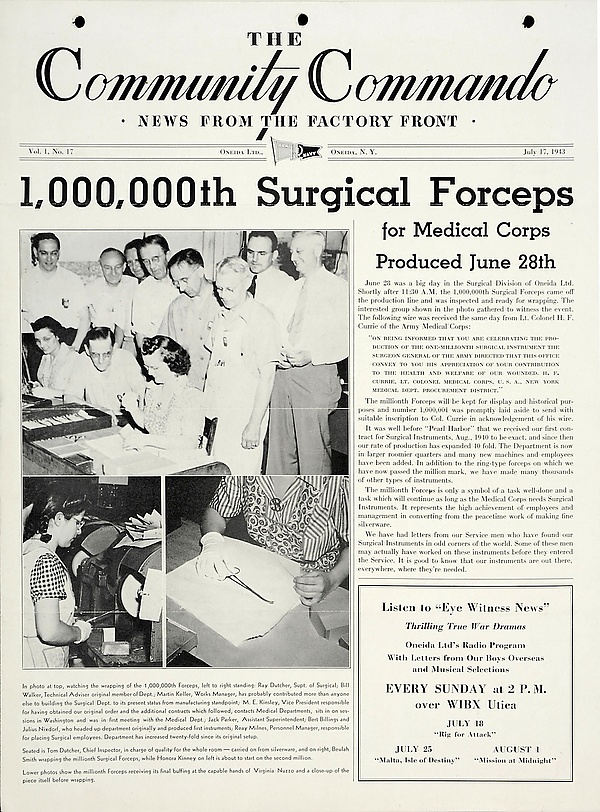 Во время Второй мировой войны Oneida купила фабрику по производству армейских грузовиков, авиационных наборов для выживания и деталей реактивных двигателей в городе Канастота штата Нью-Йорк[4].