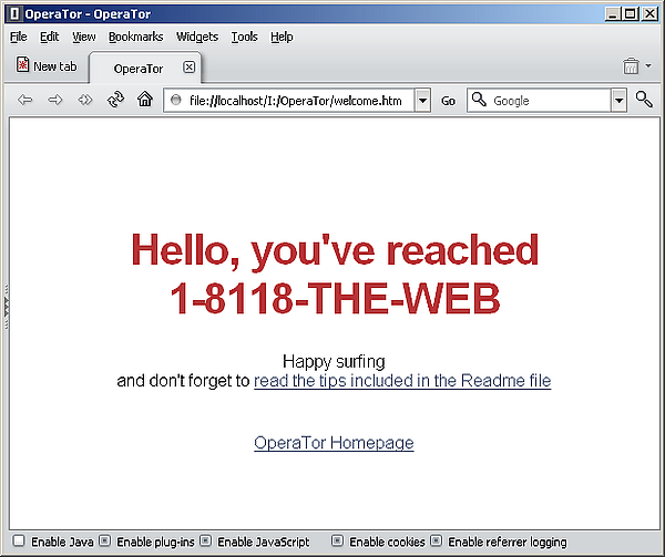 OperaTor — это программная связка, предназначенная для анонимного сёрфинга в сети интернет. В неё входит браузер Opera, клиент анонимной сети Tor и виртуальный прокси-сервер Polipo. Анонимизируется только работа по протоколам HTTP и HTTPS.