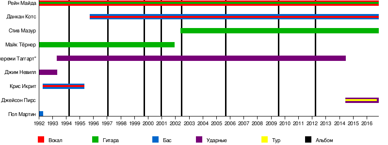 - Дункан Коутц (с 1995): бас-гитара, бэк-вокал