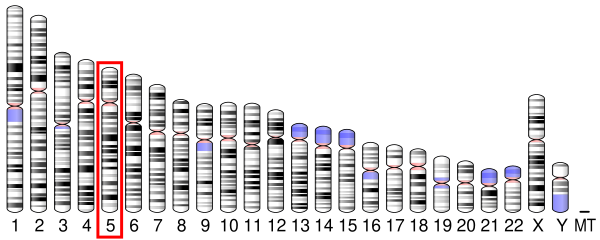 Ген PDGFRB расположен на 5-й хромосоме человека в позиции q32 (5q32), содержит 25 экзонов. Ген находится между генами рецепторов ГМ-КСФ и CSF1R на хромосомном участке, который может теряться в результате делеции, которая в результате приводит к развитию миелодиспластического 5q-синдрома[5]. Среди прочих генетических нарушений PDGFRB, приводящих к различным злокачественным заболеваниям костного мозга, — небольшая делеция и транслокация, вызывающие слияние гена PDGFRBс одним из по крайней мере 30 генов, которое приводит к миелопролиферативной неоплазии с эозинофилией и связанным с этим позреждение органа с возможной прогрессией до агрессивной лейкемией[6].