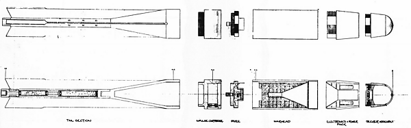 - Масса блока управления опытного снаряда — 2,4 кг (5,29 ф)