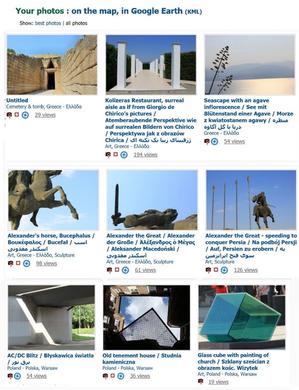 После загрузки фотографии сайт позволял экспортировать геоданные в формате KML.
