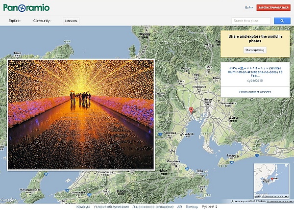 Фотографии с сайта Panoramio доступны для просмотра в геосервисах Google — Google Earth («Google Планета Земля»), а также в некоторых моделях устройств спутниковой навигации фирмы Garmin.