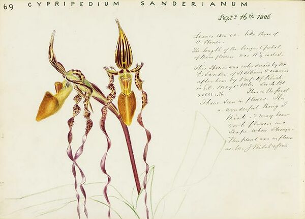 - Argent G, Cranston R, Paxton A, 1984, Paphiopedilum sanderianum (Rchb.f.) Stein flowering in cultivation. Orchid Rev., 92. (1089): 208—210.