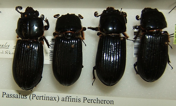 Passalus affinis (лат.) — вид сахарных жуков рода Passalus из семейства пассалиды (Passalidae). Карибские острова (остров Гаити). Крупного размера жуки, которые имеют длину около 4 см (от 42,5 до 48,6 мм), буровато-чёрные, блестящие. Края лба прямые. Один из немногих видов рода, у которого описан процесс копуляции, эдеагус и личинки Тело вытянутое, уплощённое. Надкрылья в глубоких продольных желобках[1].