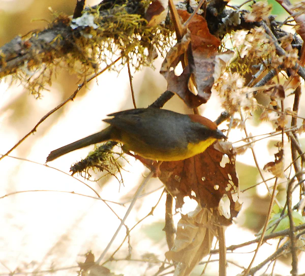 - Серогрудая кустарниковая овсянка (Atlapetes schistaceus)