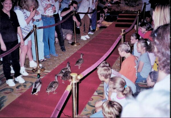 В 1932 году директор отеля Фрэнк Шутт и его друзья, вернувшись с охоты, решили, что было бы очень забавно оставить несколько живых уток в фонтане отеля. Идея вызвала настоящий фурор среди клиентов, и с тех пор в отеле «Пибоди» живут четыре утки-кряквы и один селезень. В 1940 году посыльный Эдвард Пембрук, который, до того как прийти работать в отель, был цирковым дрессировщиком, обучил уток разнообразным трюкам. За это он получил почетное звание дрессировщика уток (англ. Duckmaster) и прослужил в отеле до выхода на пенсию в 1991 году[4].