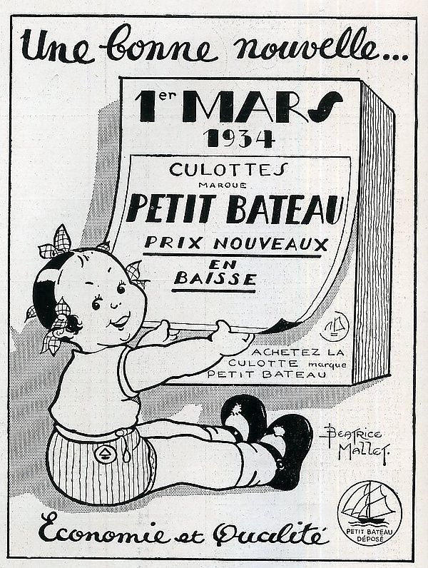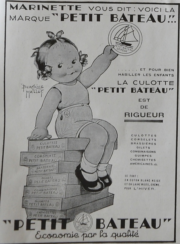 С 1920 года Petit Bateau одним из первых брендов начал использовать рекламу[4]. Маринетт, вымышленный персонаж, нарисованный Беатрис Малле, на протяжении примерно тридцати лет была символом компании[24].