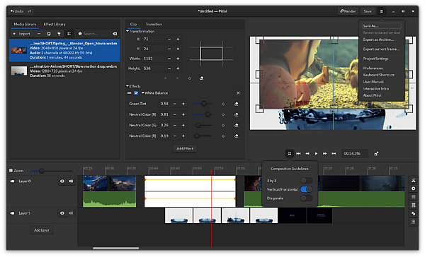 Pitivi (раньше писалось PiTiVi) — это многодорожечный нелинейный видеоредактор с открытым исходным кодом, разрабатывается сообществом свободного программного обеспечения при поддержке частной компании Collabora.