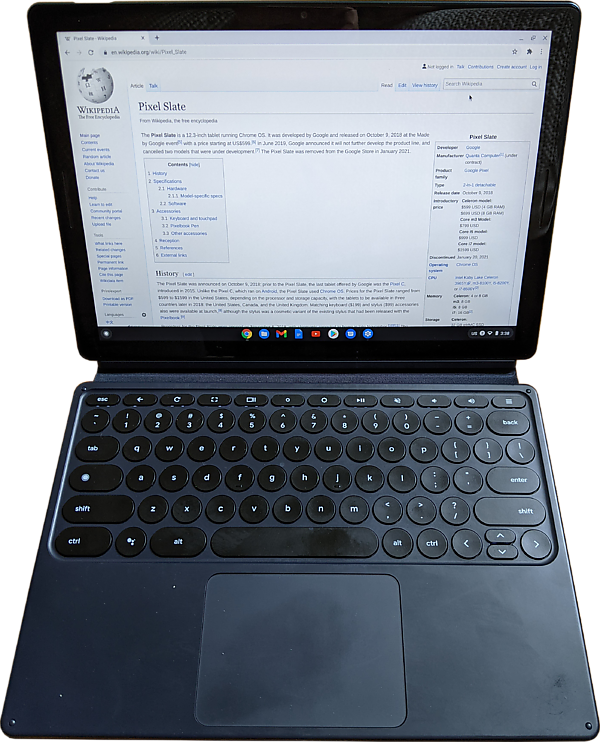 Pixel Slate — это 12,3-дюймовый планшет под управлением ChromeOS, разработанный Google и выпущенный 9 октября 2018 года на мероприятии Made by Google. В июне 2019 года Google объявила о прекращении развития линейки продуктов и отменила две модели, находившиеся в стадии разработки. Pixel Slate был удалён из Google Store в январе 2021 года.