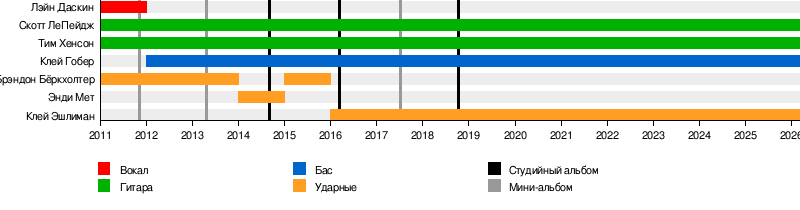 - Тим Хенсон — гитара (2011 — наше время)