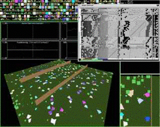 Polyworld использует графический инструментарий Qt и OpenGL для отображения среды, в которой популяция трапециевидных агентов ищет пищу, вступает в спаривания, выводит потомство и охотится друг на друга. Численность популяции обычно составляет несколько сотен, так как каждая особь довольно сложна, а среда требует значительных ресурсов компьютера. Графическая визуализация необходима, поскольку агенты действительно перемещаются по двумерной плоскости и должны "видеть" окружающее пространство. Благодаря базовым возможностям (например, питаться останками и случайно появляющейся пищей, видеть других агентов, вступать с ними во взаимодействие: спаривание, борьба и др.) в процессе продолжительной эволюции возникают сложные модели поведения — например, каннибализм, отношения хищник–жертва, мимикрия.