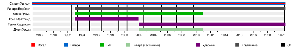 - Стивен Уилсон — вокал, гитара, банджо, клавишные, фортепиано, семплеры (1987—2010, с 2021 по настоящее время)