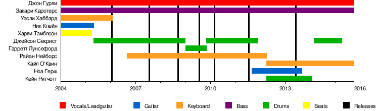 - Кейн Ритчотт — ударные, перкуссия, бэк-вокал (2012–2016, 2017–наст. вр.)