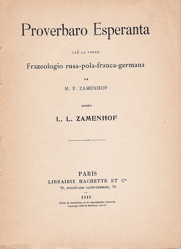 | эспер. Proverbaro esperanta, laŭ la verko frazeologio rusa-pola-franca-germana de M.F. Zamenhof | |
