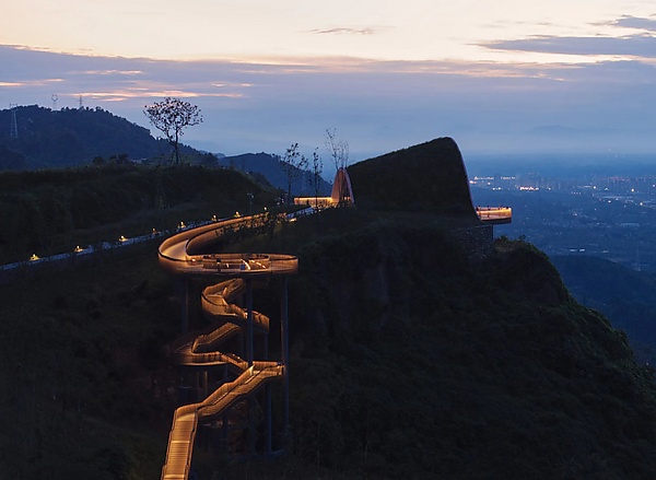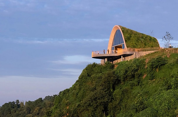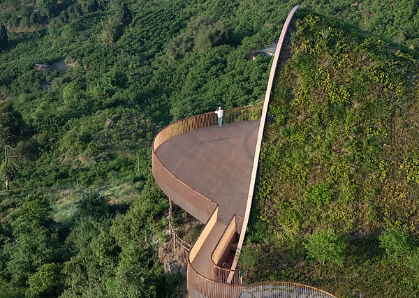 Проект был инициирован Бюро планирования и ресурсов округа Пуцзян в рамках развития нового экологически устойчивого города. Ранее на этом месте располагалась простая смотровая площадка, при строительстве которой вершина холма была выровнена. Архитекторы MVRDV предложили концепцию «эха холма», создав арочную структуру, покрытую слоем земли и растительностью, которая визуально восстанавливает естественный рельеф местности[1].