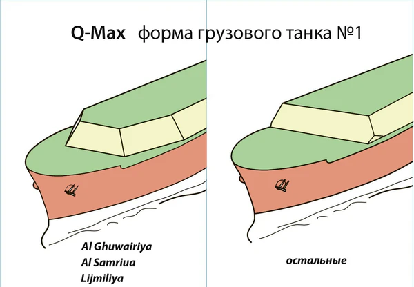 Q-Max имеет пять мембранных танков системы Gas Transport-Technigas общей вместимостью от 261 700 м 3 до 267 335 м 3. У танкеров Al Ghuwairiya, Al Samriya и Lijmiliya — танки типа GTT NO96, у остальных — типа TGZ Mark III.[4] Визуально эти три танкера легко отличить от остальных из серии по форме грузового танка № 1.