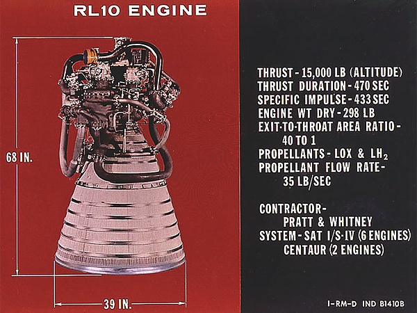 Разработка ракетного двигателя RL-10 фирмой Пратт Уитни была начата в 1959 году. Первый неудачный суборбитальный испытательный запуск состоялся в 1962,[1] первый удачный запуск был осуществлен 27 ноября 1963[2][3]. Двигатель RL-10 работает на жидком водороде и жидком кислороде, имеет удельный импульс порядка 433 сек. (4 250 м/сек) и развивает тягу примерно 6800 кг. Двигатель RL-10 не только многократно испытывался на Земле, но и успешно применялся в ряде космических пусков, за время эксплуатации доведён до высокой степени надёжности. Обновлённые версии двигателей, такие как RL10B-2, RL10A-4-2, используются в некоторых современных средствах выведения.