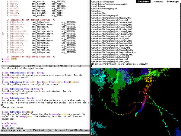Ratpoison («крысиный яд») — минималистичный фреймовый оконный менеджер, работающий без использования дополнительных библиотек, графики и мыши. Создан под влиянием GNU Screen.