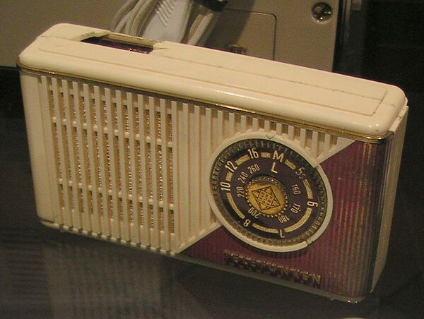 В том же 1955 году появился первый японский приёмник — Sony TR-55[30], в марте 1957 г. в США начались продажи 6-транзисторного Sony TR-63 по цене 39,95 долл.[31][32] В Великобритании первый транзисторный приёмник выпустила фирма Pye в 1956 г. (модель Pam 710)[33] по цене 22 фунта 14 шиллингов 10 пенсов плюс налог 8 фунтов 15 шиллингов 3 пенса[34]. В Западной Германии первым стал Telefunken TR1 (1956 г.)[35], но в продажу он не поступал; коммерческие приемники появились в 1957 году — Akkord Peggie (189 марок)[36] и Telefunken Partner (169 марок)[37]. Во Франции — Fanfare Transivox выпущен в 1956 г.[38] В ГДР предприятие Stern-Radio Berlin начало производить 6-транзисторную модель Sternchen в 1960 г.[39]