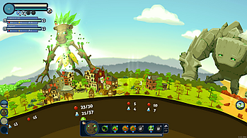 В игре Reus необходимо управлять четырьмя элементальными великанами, обладающими способностью изменять двумерную планету. Великаны наделяют каждую «клетку» местности ресурсами, такими как животные, растения или минералы. Задача игрока — оказывать помощь обитающим на планете людям, которые действуют самостоятельно и не поддаются прямому контролю. Действия игрока влияют на поведение людей; например, избыток ресурсов может сделать людей жадными и привести к войнам между поселениями[7].[8]