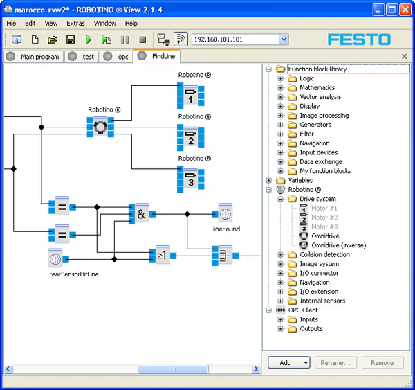Для пользователей, чьи навыки программирования роботов невелики, существует программный продукт RobotinoView 2. Для более умелых пользователей предусмотрена поддержка роботом таких сред разработки, как C, C++, Java, .NET, MATLAB, Simulink, LabVIEW и Microsoft Robotics Developer Studio.