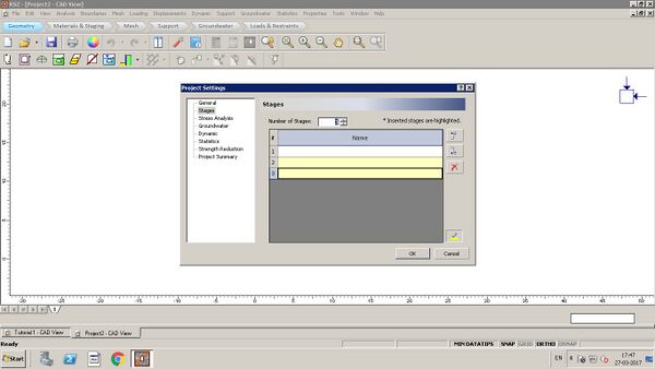 - Ctrl + 6- Add Piezo Line, добавить Уровень грунтовых вод (Пьезолиния или англ. Water table). Пьезолинии обычно используются, когда имеется несколько уровней грунтовых вод для различных материалов или когда для одного из материалов имеется артезианское состояние.