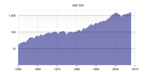 - 1958 год — лучший год по процентному росту, S&P 500 вырос на 38,06%[3].