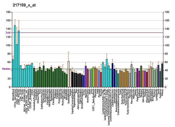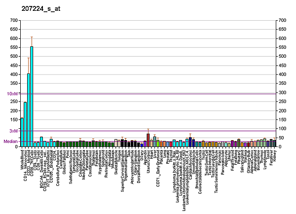 Преимущественно экспрессирован на покоящихся и активированных естественных киллерах и в меньшей степерни на моноцитах и гранулоцитах. Особенно высокая экспрессия обнаружена на клетках плаценте, печени, лёгких, селезёнки и лейкоцитах периферической крови.