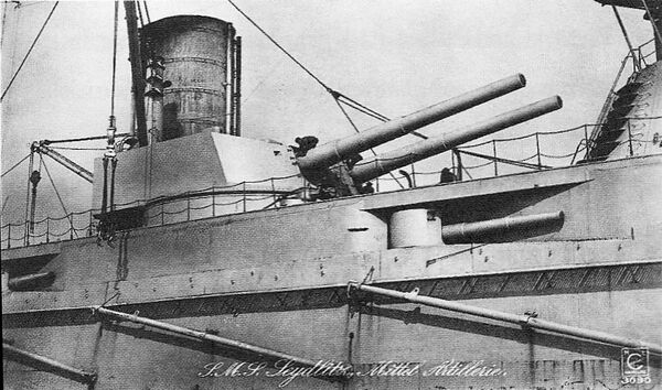 При постройке на «Зейдлице» устанавливались 12 неуниверсальных 88-мм орудий 8,8 cm SK L/45 с длиной ствола 45 калибров. Орудия располагались в установках MPL C/01-06. Четыре были расположены в носовой части под верхней палубой, два в носовой надстройке, четыре позади батареи 150-мм орудий и ещё два орудия по бокам кормовой надстройки в установках, прикрытых щитом[12]. Их общий боезапас составлял 3400 снарядов[7]. В начале Первой мировой войны вместо двух орудий, установленных на кормовой надстройке, были установлены зенитные 88-мм орудия 8,8 cm Flak L/45 с длиной ствола 45 калибров в установках MPL C/13 (образца 1913 года), с максимальным углом подъёма ствола 70°. К Ютландскому сражению в 1916 году все остальные 88-мм орудия, кроме зенитных, были демонтированы[12].