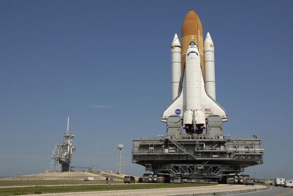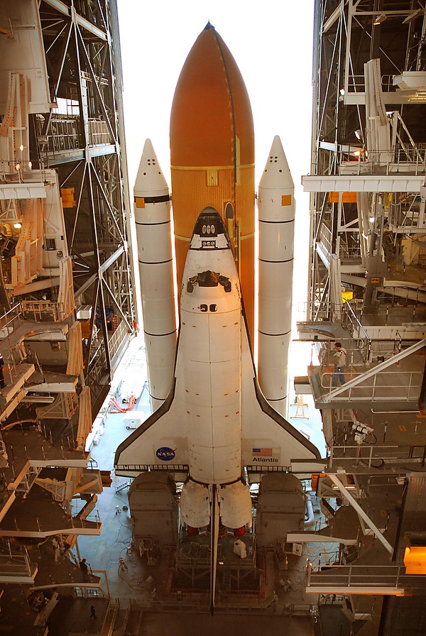 - 15 февраля шаттл «Атлантис» вывезен на стартовую позицию. Перевозка «Атлантиса» началась в 13:15 UTC (8:15 a. m. EST, 16:15 московского времени) и закончилась в 19:09 UTC (3:09 p. m. EST, 22:09 московского времени) . «Атлантис» установлен на стартовой площадке 39А. Последний раз эта площадка использовалась для запуска шаттла четыре года назад.