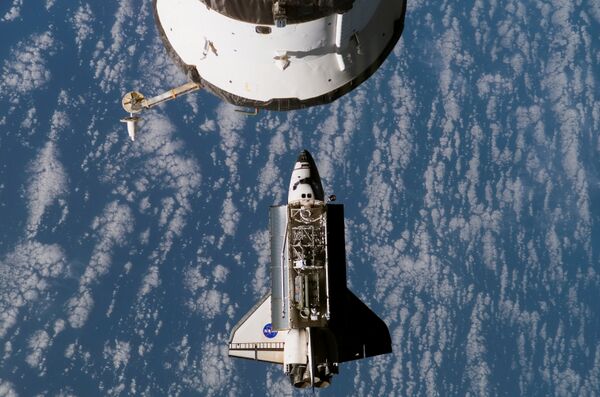 Члены экипажа шаттла давали интервью с орбиты американским средствам информации.