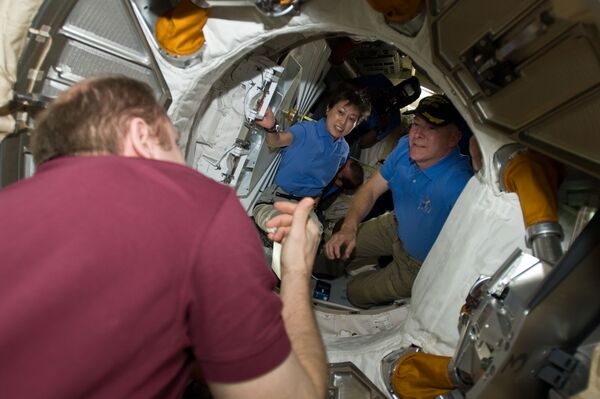 Экипажи «Дискавери» и МКС попрощались в модуле «Гармония».