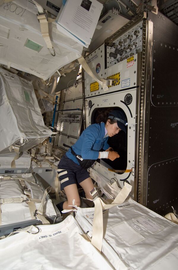 Астронавты подготавливали оборудование для предстоящей стыковки с МКС. Ричард Мастраккио и Клей Андерсон проверяли свои скафандры для предстоящих выходов в открытый космос.