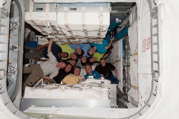 Внутри станции астронавты продолжали оборудовать вновь пристыкованный модуль «Леонардо».