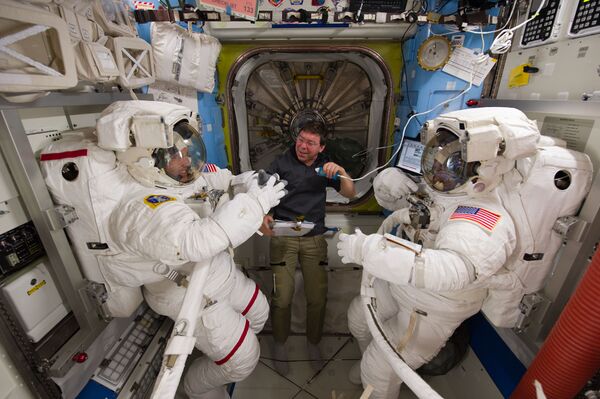 Стивен Боуэн и Алвин Дрю готовились к предстоящему на следующий день выходу в открытый космос.