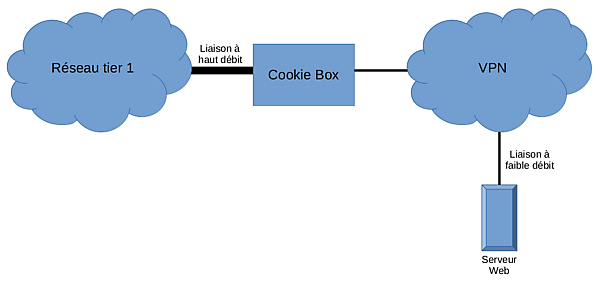 Flow-cookies — механизм, при котором веб-сервер работает совместно со специальным устройством («cookie box»), подключённым к скоростному каналу. Всё общение между защищённым сервером и внешней сетью проходит через этот промежуточный фильтр, который добавляет SYN cookies в исходящие пакеты. «Cookie box» может фильтровать подозрительный трафик (например, блокировать клиентов по IP) и тем самым эффективно защищать сервер от DDoS-атак[22].