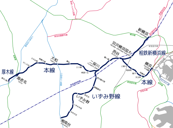 - Линия Сотэцу от станции Иокогама в городе Иокогама до станции Эбина в городе Эбина, 18 станций, 24,6 км.