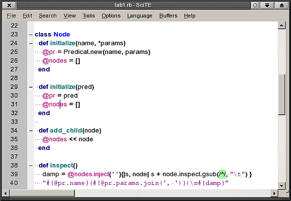 Особенности реализации отображения текста в SciTE: