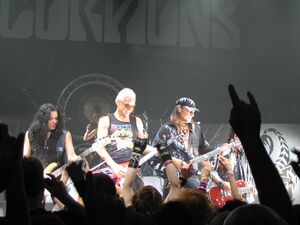 Scorpions (рус. Скорпионз[12], с англ. — «Скорпионы») — немецкая англоязычная рок-группа, созданная в 1965 году в Ганновере[13]. Для стиля группы характерны как классический хард-рок, так и лирические гитарные баллады.