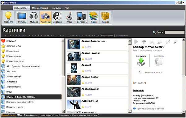 В файлообменнике имеется чат, который разделён на несколько разделов. За чатом следят администраторы и модераторы Shareman.