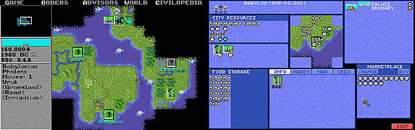 Первая версия Civilization разрабатывалась для платформы DOS образца конца 1980-х годов, когда системы начали переходить с 16-цветного EGA на более совершенный 256-цветный VGA. Желание поддержать устаревающий формат и охватить тем самым более широкую аудиторию игроков стало основным ограничением в количестве доступных цивилизаций: EGA позволял отображать не более 16 цветов, из которых для обозначения цивилизаций доступно только восемь. Ввиду того, что цивилизация «Варвары» использовала свой цвет (красный) эксклюзивно, во время партии одновременно могло участвовать не более 7 цивилизаций. Каждый из семи цветов делился между двумя цивилизациями, из-за чего одновременно на карте могла присутствовать только одна из них[37][32].
