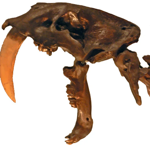 Smilodon fatalis (лат.) — наиболее известный представитель вымерших саблезубых кошек.