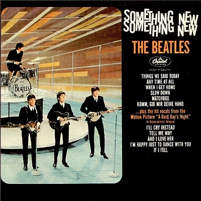 Something New (с англ. — «Что-то новое») — студийный альбом английской рок-группы The Beatles, издан в 1964 году, третий из альбомов, выпущенных Capitol Records, всего из американских изданий — пятый, следующий за изданным лейблом United Artists (в американской версии) альбомом A Hard Day’s Night. В этот альбом включены восемь песен с оригинального британского издания A Hard Day’s Night, а также «Slow Down» и «Matchbox» с мини-альбома (EP) Long Tall Sally; ещё была добавлена версия песни «I Want to Hold Your Hand», спетой на немецком языке (под названием «Komm, Gib Mir Deine Hand»). Альбом был выпущен в моно- и стерео-версиях; на стерео-версии были повторены все моно-миксы пяти песен из альбома, выпущенного United Artists. В моно-издании содержатся альтернативные версии песен «Any Time at All» (другой баланс инструментов в инструментальном «бридже»), «I’ll Cry Instead» («отсутствующий» третий куплет), «When I Get Home» (строка «Till I walk out that door again» в «бридже» поется с другим вокальным пассажем, чем в британском моно-миксе) и «And I Love Her» (здесь вокал Маккартни записан один раз, а не «двойной», как на британском моно-альбоме) (McCartney’s non-double-tracked vocal).