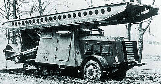 Мостовое оборудование располагалось в кормовой части машины. Наведение и снятие моста производилось с помощью системы гидравлических приводов, управление процессом осуществлялось дистанционно из отделения управления. Односекционная двухколейная мостовая конструкция длиной 8,2 м и шириной 2,2 м (ширина одной колеи составляла 0,6 м) имела номинальную грузоподъёмность 20 т, однако армейские испытания показали, что фактически она успешно выдерживала средний пехотный танк Char B1, масса которого составляла 32 т[1][2][3].
