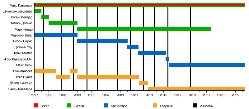 В октябре 2012 года стало известно, что Дэвид Кинкейд уходит из группы после завершения турне.[11] Во время североамериканского турне в начале 2013 года на ударных будет играть сын Макса Зайон Кавалера (Zyon Cavalera).[12]